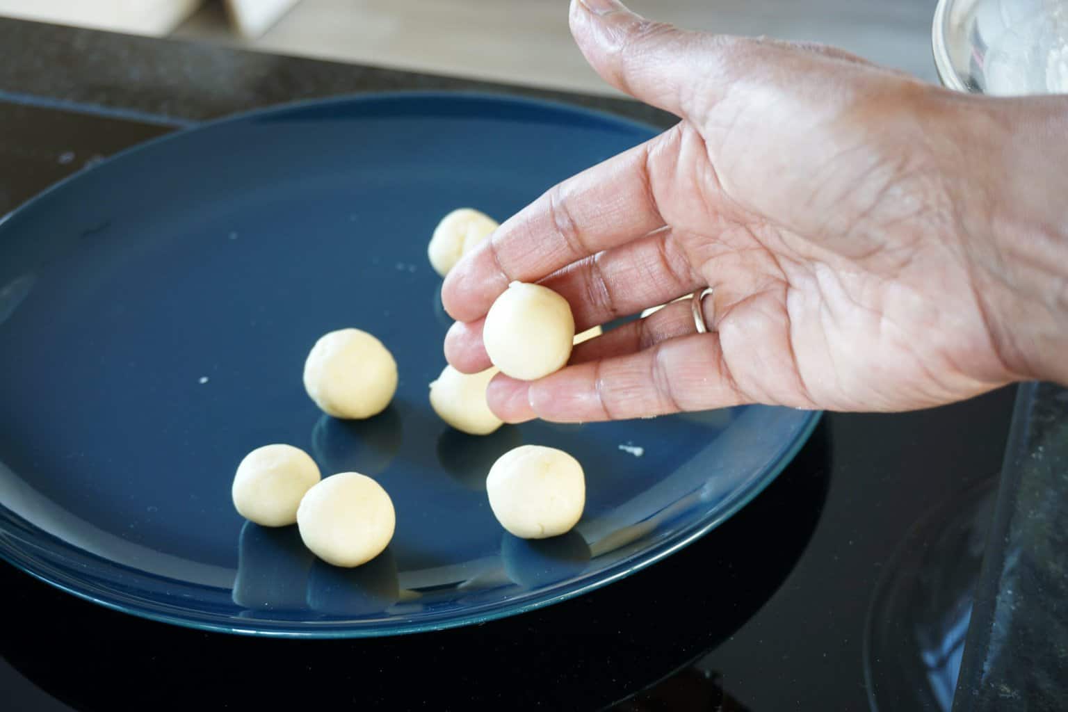 6. Keep the size of the balls small, as they will expand slightly after frying and soaking in the syrup.